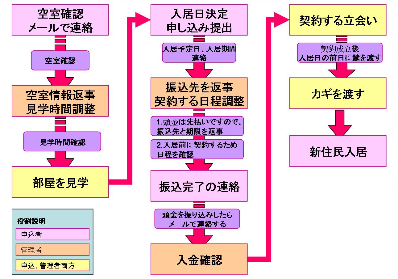 ③申込者が部屋を見学しに来て、管理者は立ち会いします。